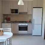 Eine komplette Küche mit einer Mikrowelle, einer Kaffee-/Teemaschine und einem Kühlschrank wird in der Beach House La Lanzada. Angeboten. Von dieser Villa sind es 50 Minuten mit dem Auto zum Flughafen Vigo.